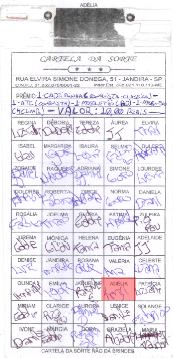 O ganhador da rifa foi o Rafael Kenji, o nome que saiu foi Adelia.