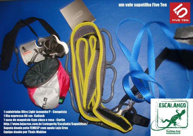 1 sapata Five ten – o ganhador(a) escolhe qualquer uma desse link http://www.lojacrux.com.br/categoria/Escalada/Sapatilhas/