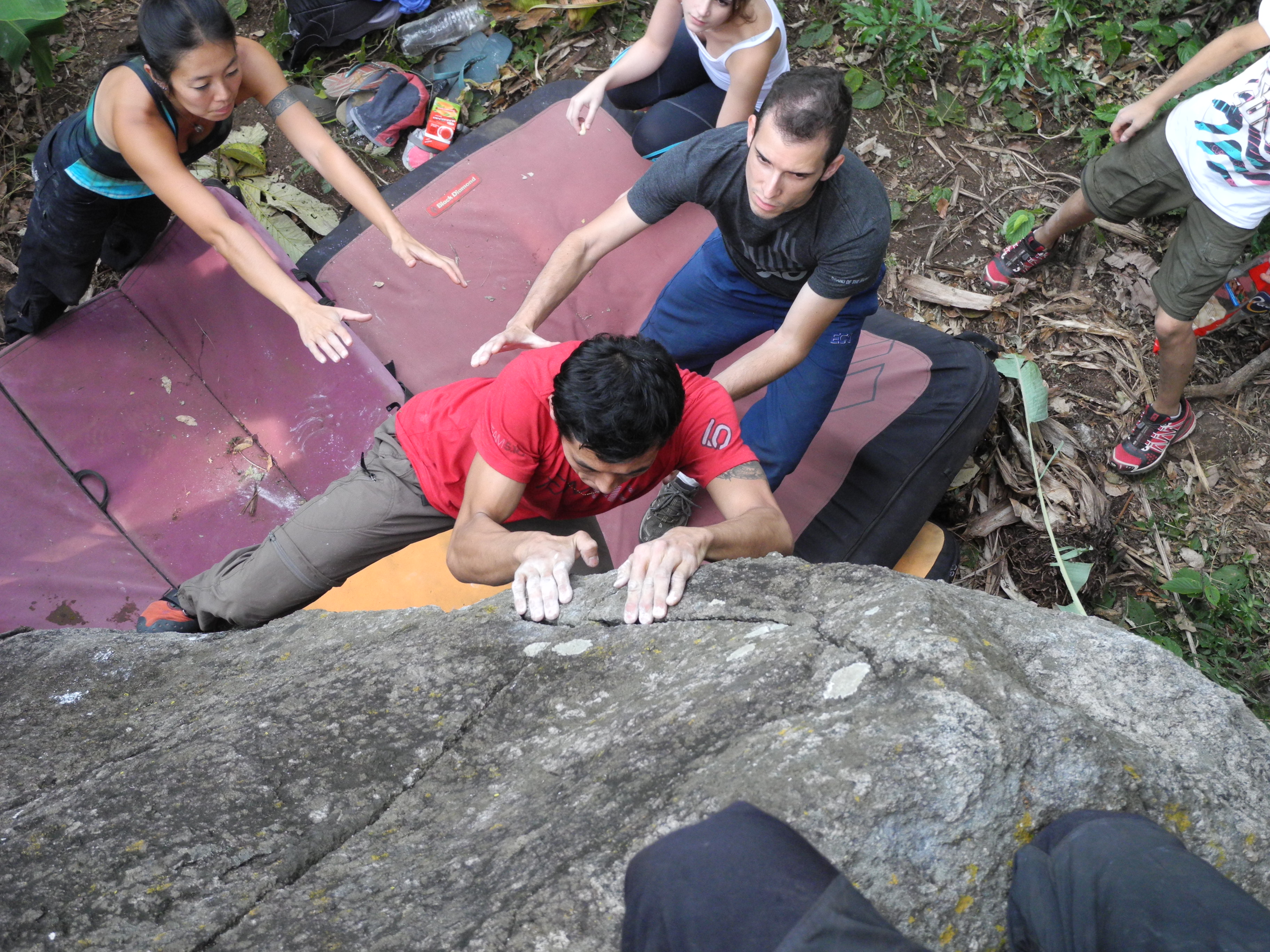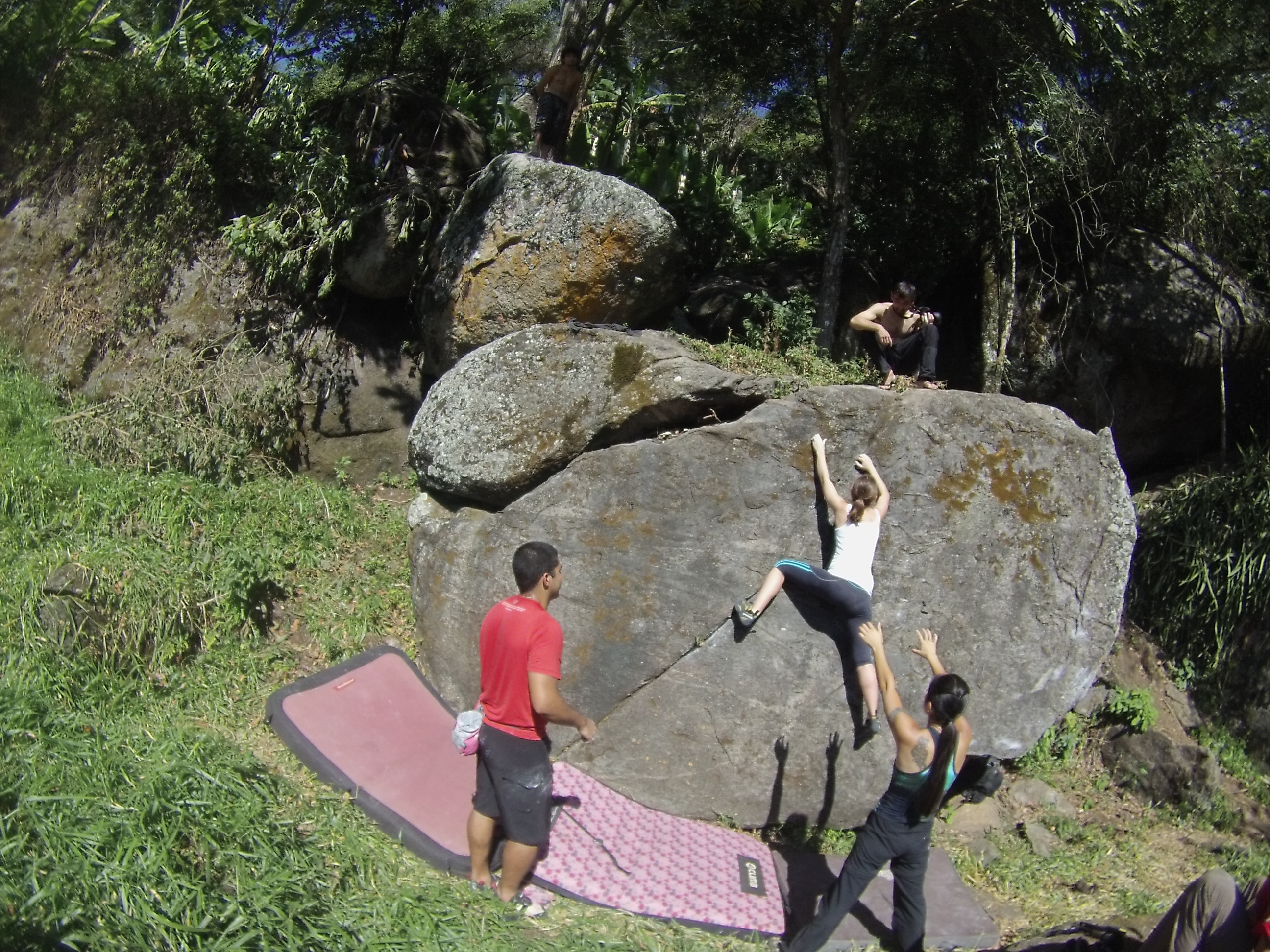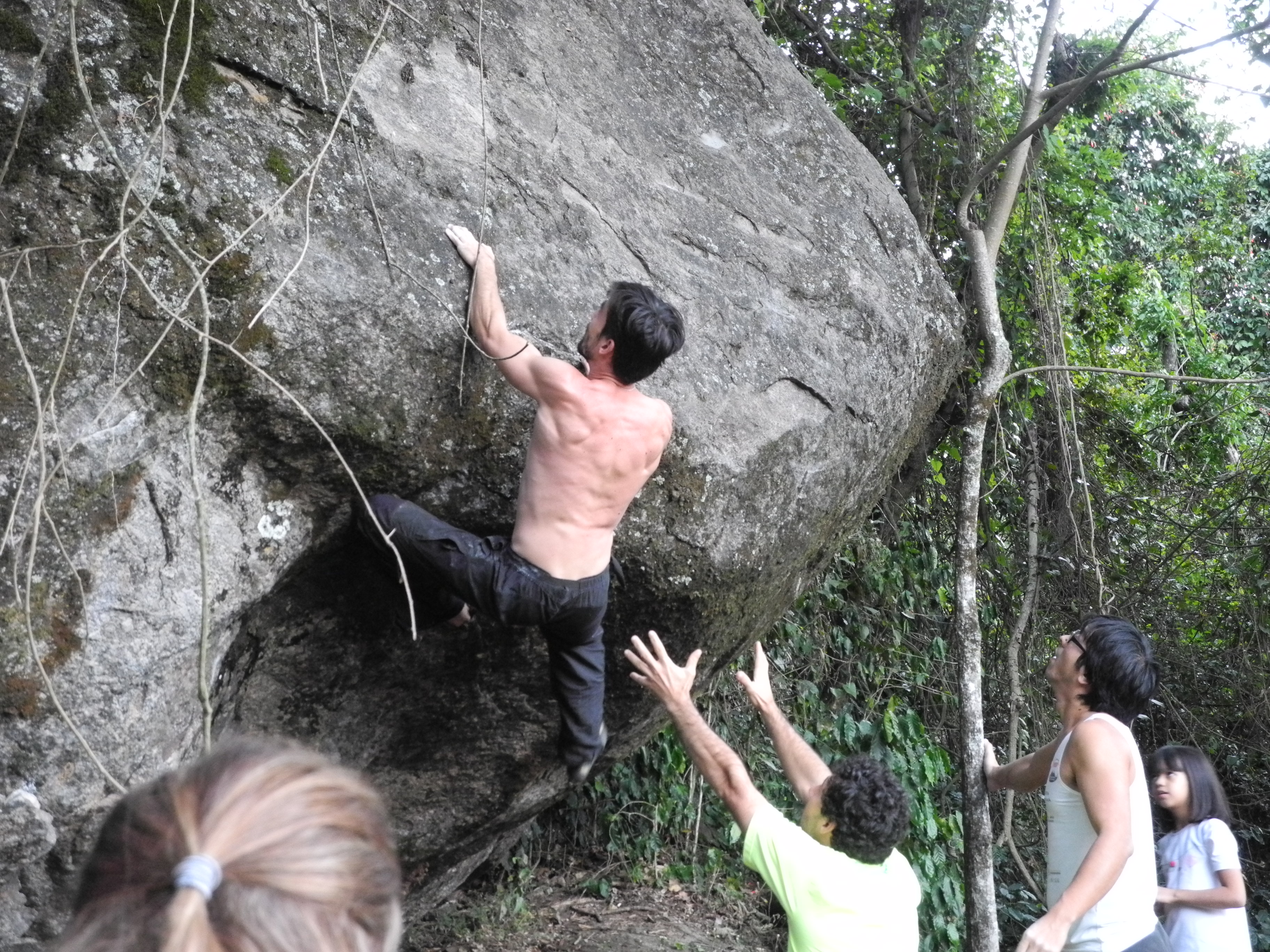 Acordamos bem cedo no sábado e o tempo estava bem feio, descemos para a cidade pois encontraríamos a galera que estava chegando. No café dos escaladores(acho que todo mundo que escala toma café la), encontramos o Felipinho, Alvaro e a Lucia, que decidiram escalar com a gente, o Balestero chegou depois e esperamos o Claudio e a Yuri, bonde formados partimos ao setor Rubinho, um local novo que esta sendo explorado, limpo e agora divulgado!