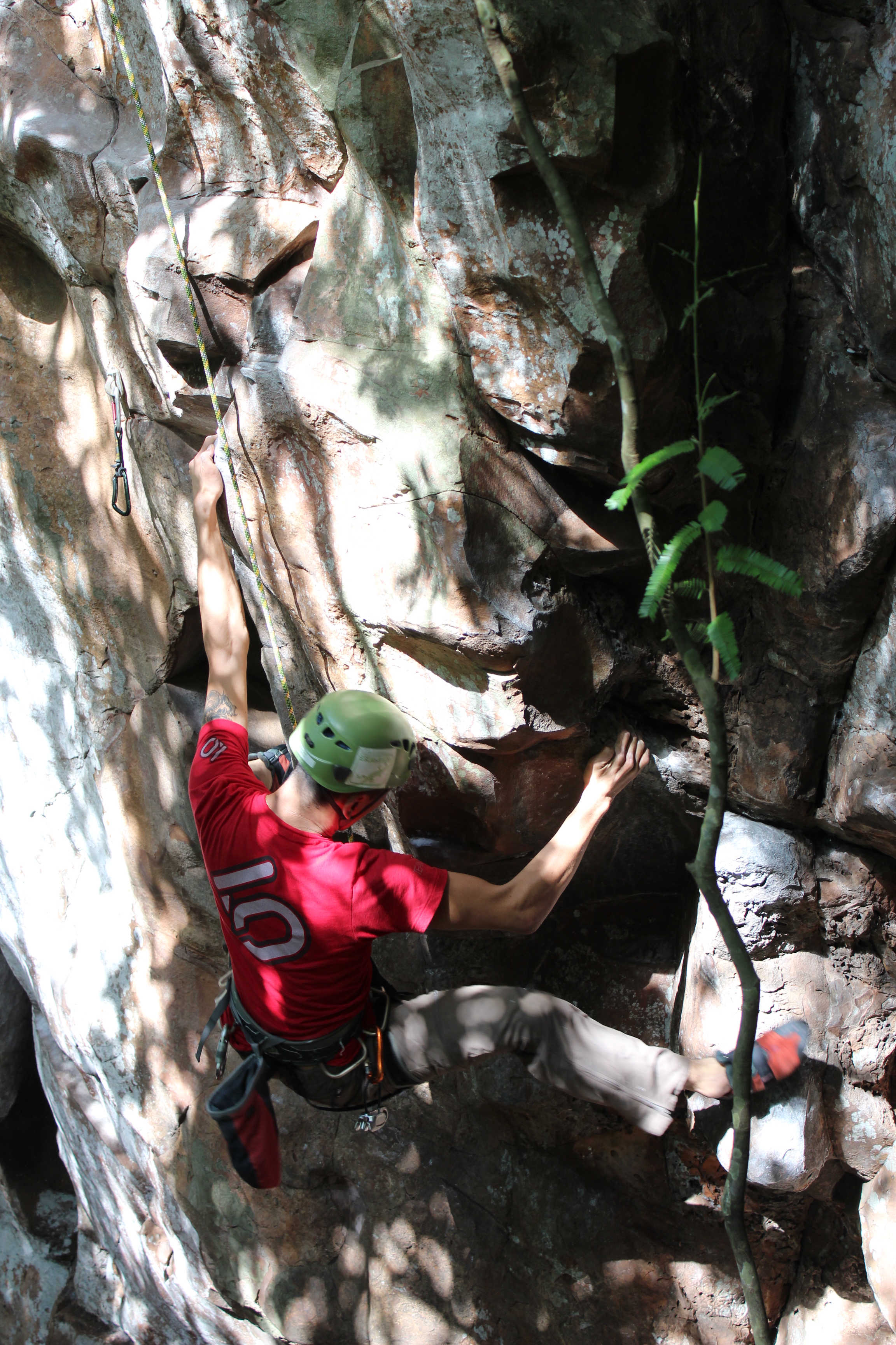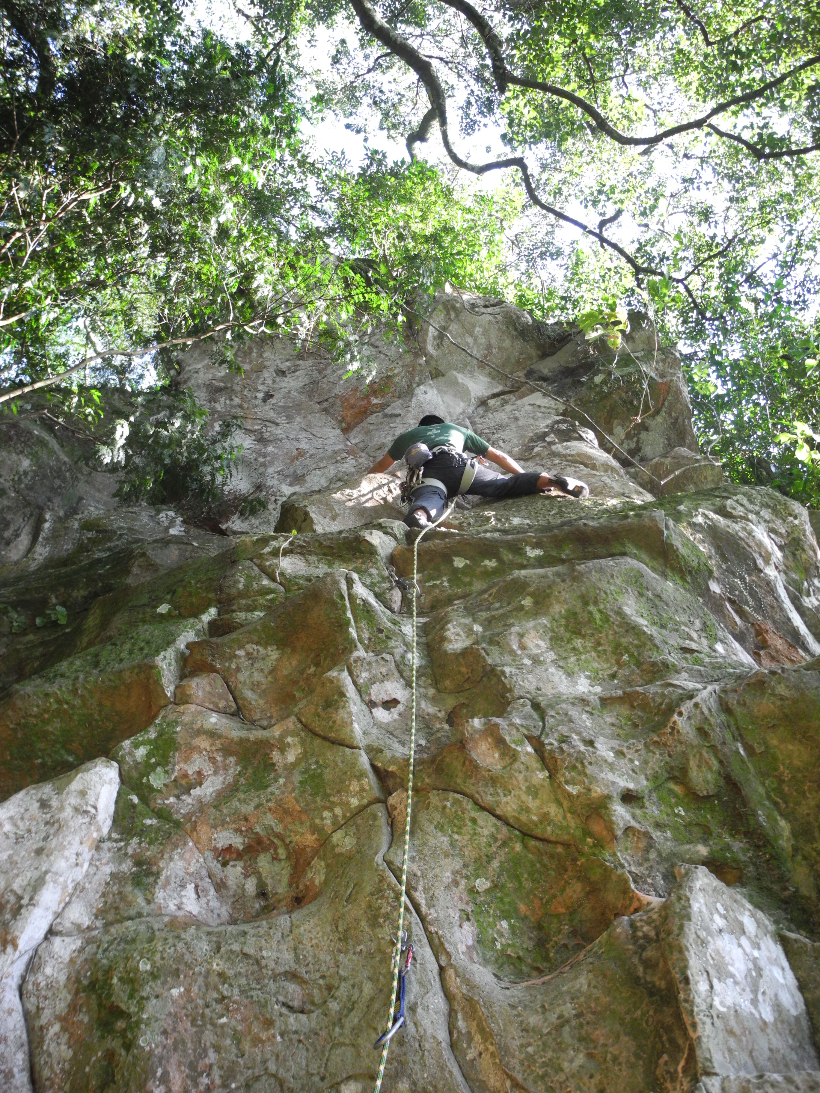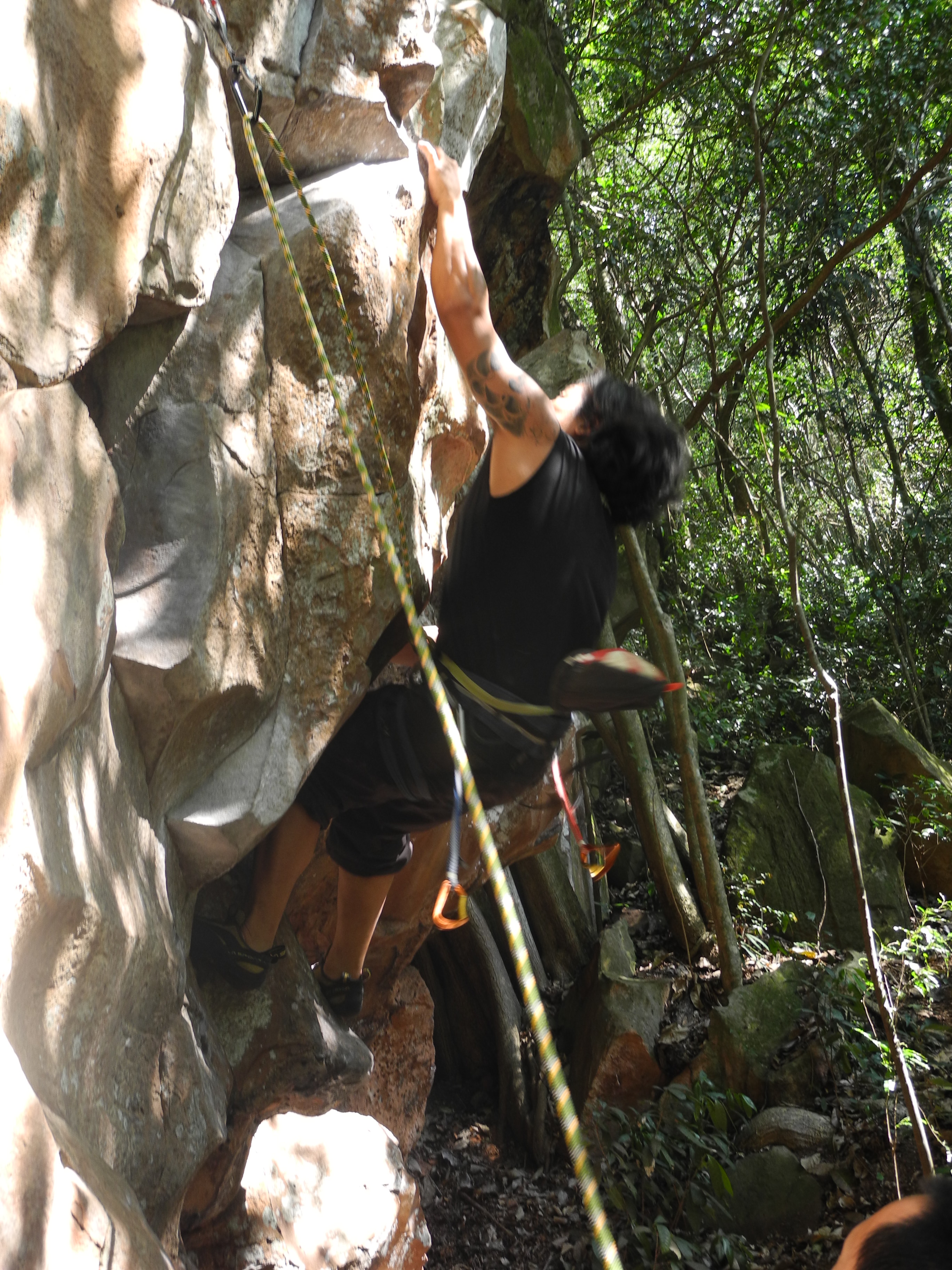 Mas o que vocês querem saber é como foi a escalada, né? Eu escolhi uma via que ja havia cadenado e era bem tranqüilo, nossa já na saída deu sentir a diferença, minha movimentação esta bem melhor, porque é como se tivesse destravado as minha coluna, então fico mais colado na rocha e consigo descansar também, a cadena saiu fácil e todos ficaram muito felizes e eu parecia uma criança escalando pela primeira vez!! E com isso saiu um grande peso, pois não sabia que seria assim e estava preocupado se iria conseguir escalar, dei mais um pega na via para tirar umas fotos e vídeos rs