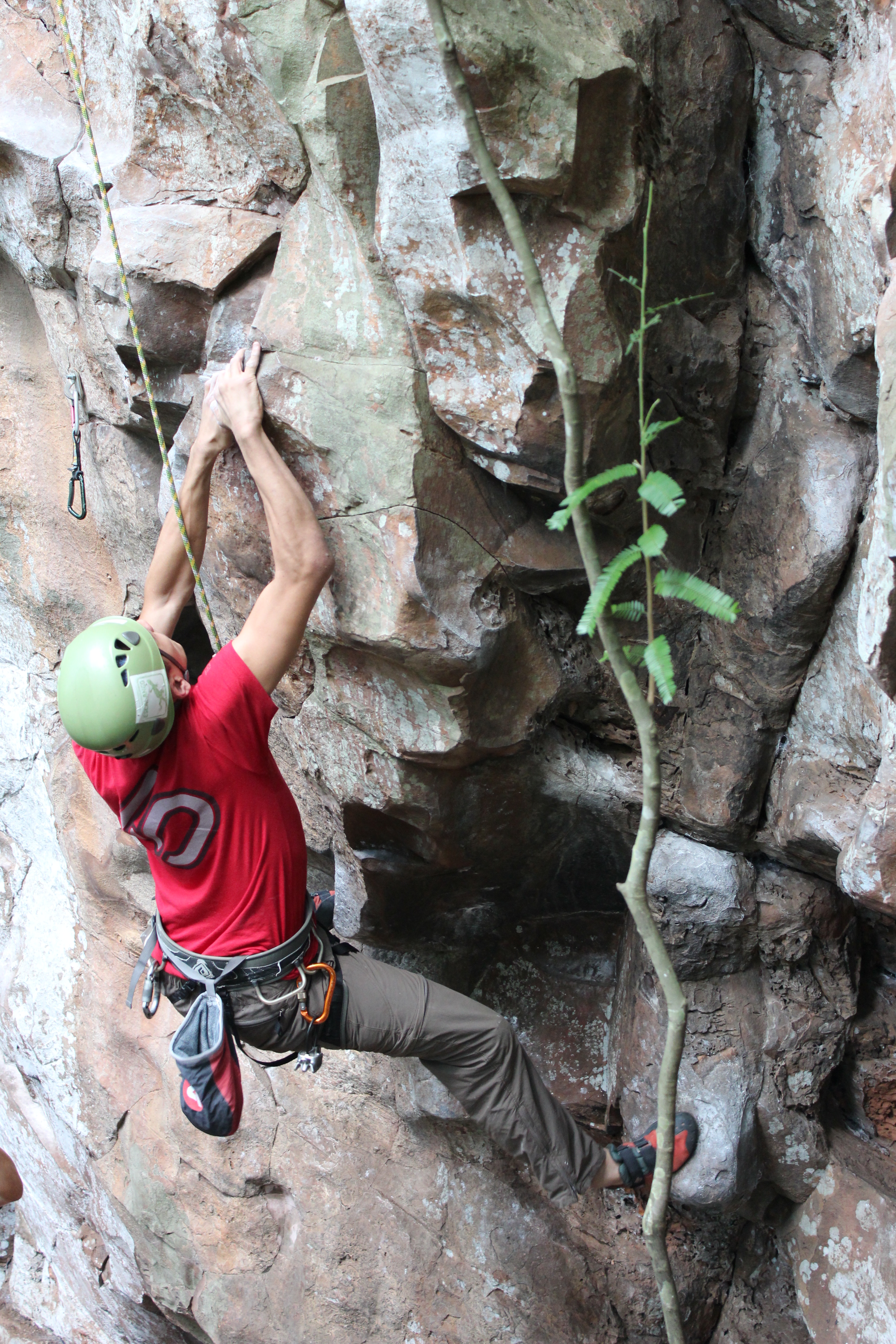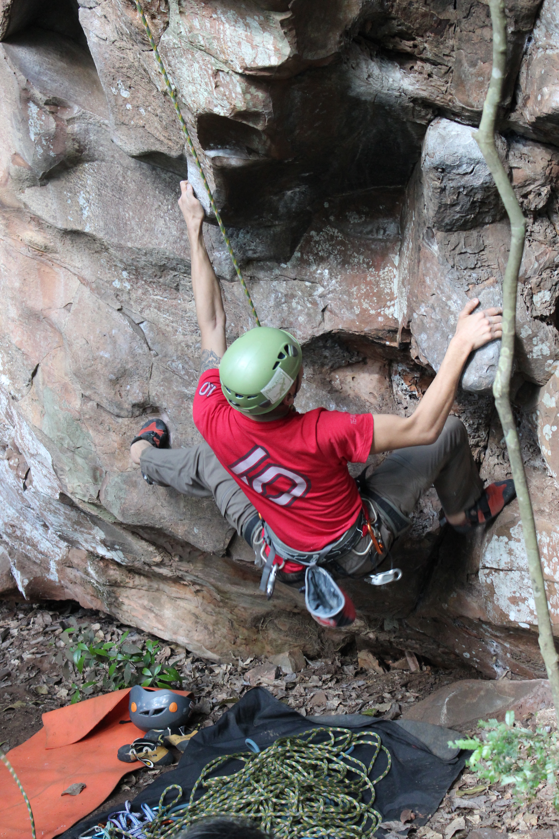 Domingo foi de conhecer Cuzcuzeiro, esse é dos locais que mesmo quem não escala deveria subir e a ver a vista! essa Pedra é bem diferente, no meio do nada tem um morro e la em cima um mega bloco de arenito!! O Fabinho foi equipar a via e a primeira chapa era muito alta, tipo uns 6, 8 metros e ne nesse dia estava um vento muito forte, então ate ele costurar estava lá embaixo adrenado, só de ver a altura da via, sabia que daria trabalho, pois minhas ultimas escalada forem de boulders! e lá a via deveria ter uns 25 metros! Mais uma vez consegui escalar e me movimentar muito bem, mas a resistência foi-se. então esse dia só fiz essa via, mas o bom disso é que tanto em Cuzcuzeiro e Itaqueri ficaram muitos projetinhos o que estimula ainda mais nossa volta!