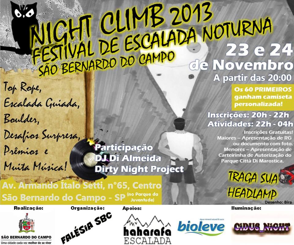 Este evento acontecerá dia 23 (sábado) de novembro das 20:00hs as 04:00hs na parede de escalada de São Bernardo Do Campo no ABC paulista, mais conhecida pela (Pista de Skate) ao lado do Paço Municipal com entrada franca.