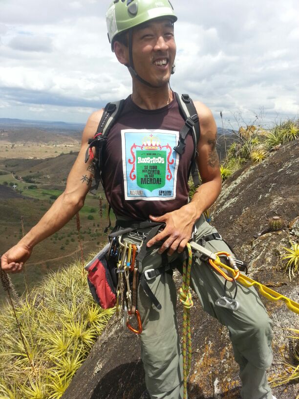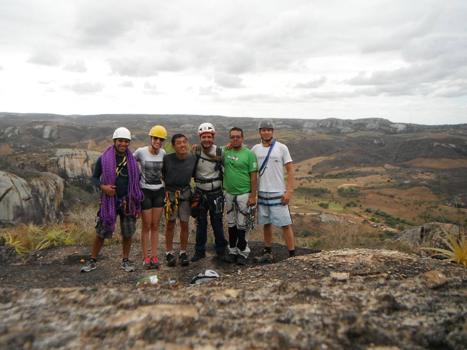 Sexta foi o dia de um merecido descanso, sábado de madrugada partimos para a Pedra da Boca – Araruna – PB divisa com o Rio Grande do Norte, dessa vez a turma era maior, Felisberto, Cris, Richard, Rossini, Magna, Amy, Charles e sua esposa. A estrada não estava muito boa, muitos buracos e ate tivemos que desviar de um peru suicida no meio da estrada, Felis insistia em ir na contra mão para desviar dos buracos e eu educadamente solicitava que voltasse para a mão certa rs apenas uma vez eu usei um palavrão, que funcionou, porque foi ele voltar para a mão certa que veio um carro….. só emoção…  sobre a escalada, fizemos a Via Sacra, 240 metros ate o cume, a formação rochosa é cristalzinho, para quem é de SP é a mesma pedra la da Pedra Bela, uma escalada bem tranquila com apenas um crux de um V ou V sup talvez, mas para quem guia, é uma via bem exposta! Um detalhe, após chegar ao cume é necessário passar por um corredor de macambiras, eu achei que estavam me sacaneando e não queria passar, mas não teve jeito…. mas eu com minha inteligência, peguei a mochila de ataque mais pesada que eu já usei e joguei por cima delas, passei ileso!!!!!!!! Depois foi achar a trilha e descer, mas vou te falar a trilha é muito pior que subir, se pudesse eu faria o rapel! Nesse dia ainda a noite, partimos para o night climb em  Serra Caiada – RN, um evento muito legal, mesa de som, DJ, iluminação e diversão garantida!