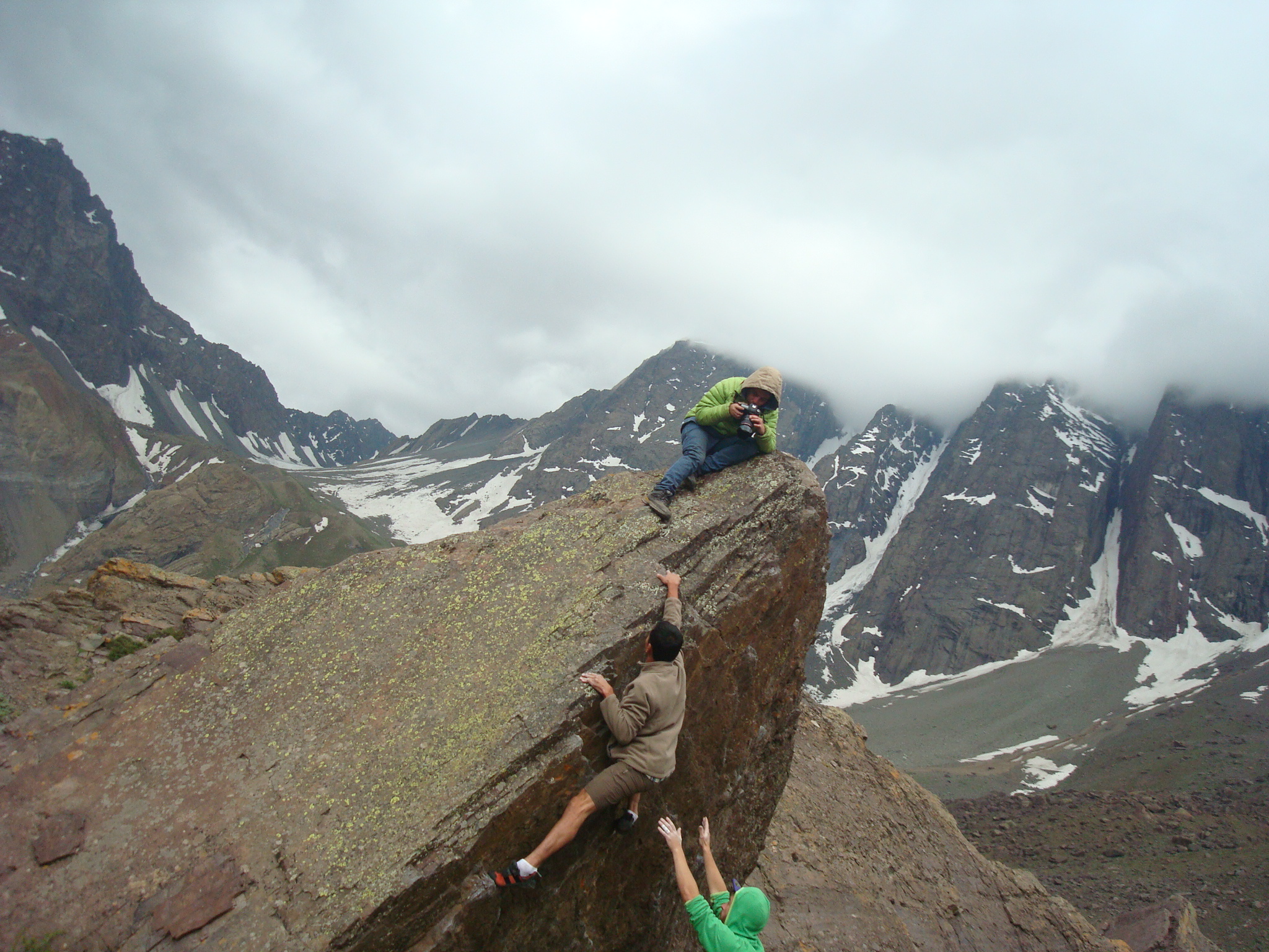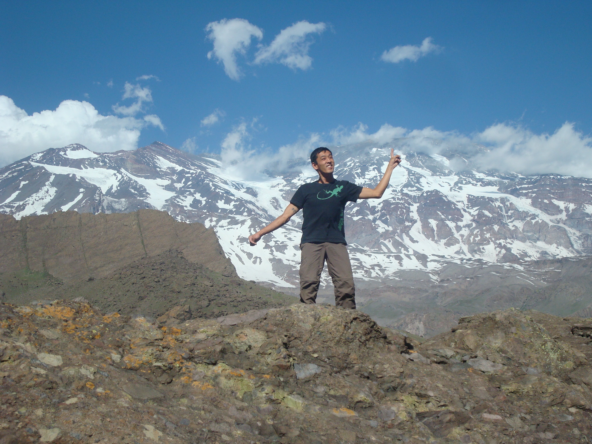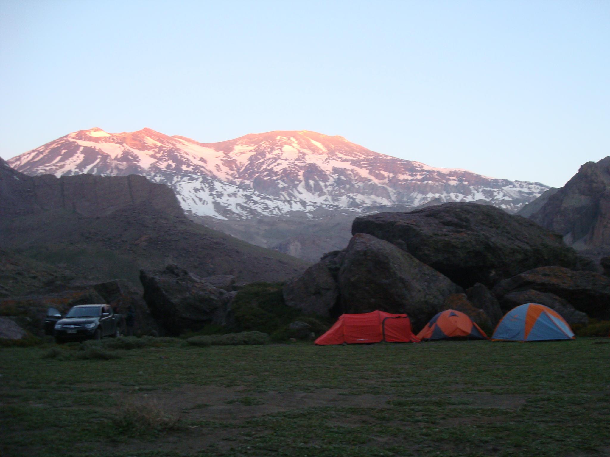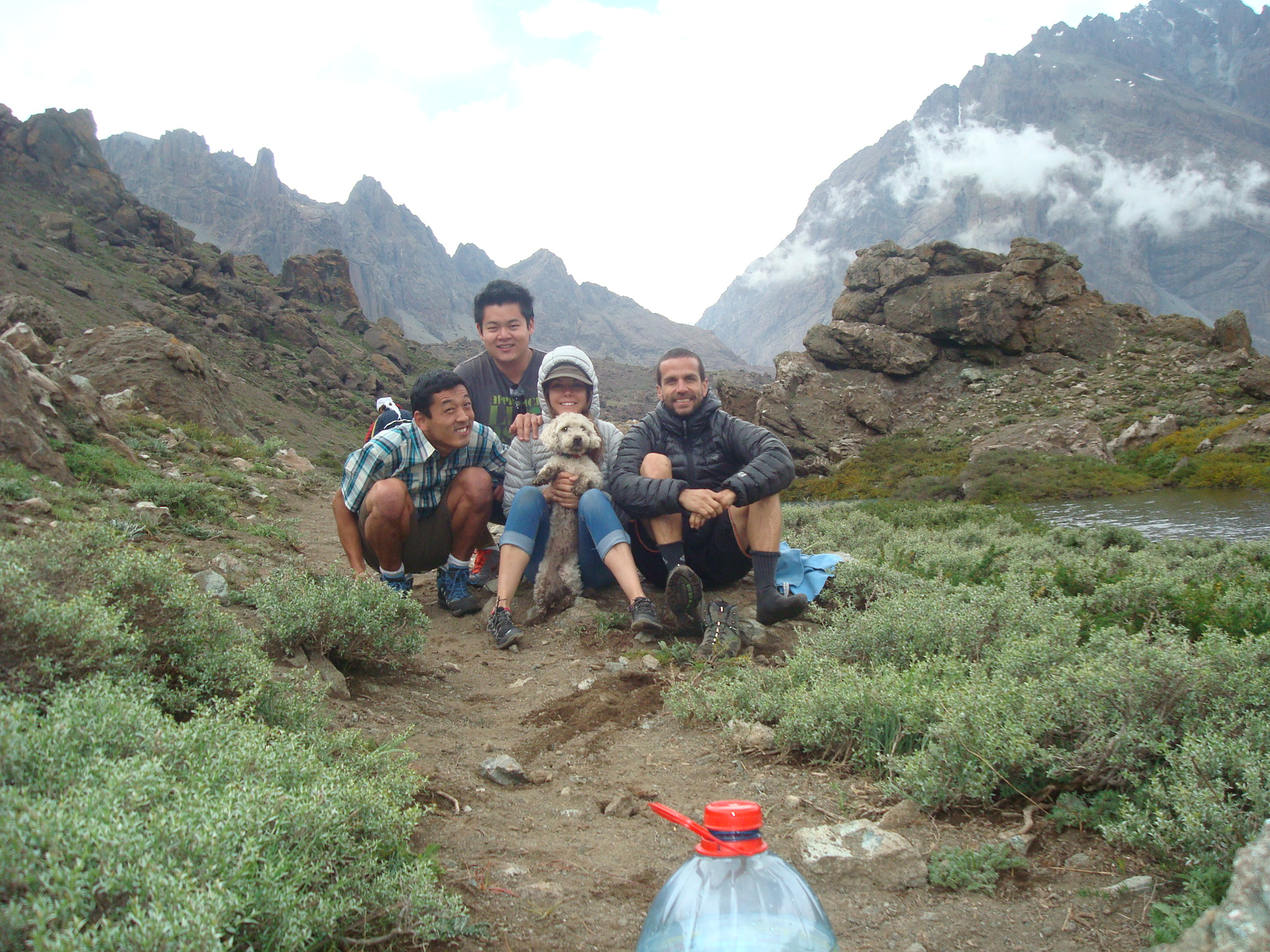Meu voo chegou as 11h, mas ate pegar as malas, imigração, sair, perdemos mais de 1h30, como tem fila por lá! No aeroporto conheci o Vicente Lorca que organizou toda a minha ida e o Diego, os dois que me levavam para todos os compromissos, após mais transito, encontramos a Andi que levaria eu e meu irmão para a montanha, na cidade Cajon del Maipo, um lugar muito lindo. Nesse fim de semana estava rolando um evento de escalada, o Dia de La Cordada, após conhecermos a região tínhamos a missão de encontrar o Pablo que nos ajudaria com a logística das barracas e escalar. Sábado foi bem cansativo então optei por não escalar e fazer umas caminhadas para conhecer o local, a noite o Pablo preparou uma bela macarronada… após isso fomos dormir, o frio imperava rs e na madrugada para piorar caiu o mundo em forma de chuva e vento. Domingo aparentemente não iria rolar escalada, tudo muito molhado, então resolvemos andar, dessa vez uma caminha maior para conhecer uma lagoa que era abastecida pelo degelo das montanhas, deu até para tomar a água, muito gelada e gostosa. Na volta ao acampamento encontramos o James(video maker da Lippi) e o Lipe que foram lá para gravar as primeiras imagens do documentário que foi filmado por lá, e o tempo colaborou, a pedra secou e rolou uns boulder, boulders com um visual incrível, montanhas com neve ao fundo.